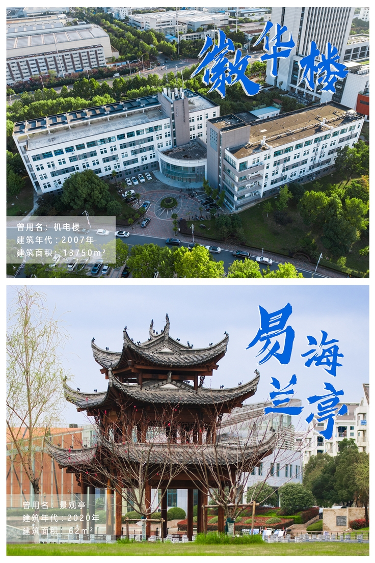 本网讯 “建工楼、建业楼、建树楼、建艺楼、徽学楼、徽风楼、徽韵楼、徽匠楼、徽文楼、徽华楼、易海兰亭...”在安徽888集团建校65周年之际,学校的部分楼宇建筑物终于有了“新名片”。