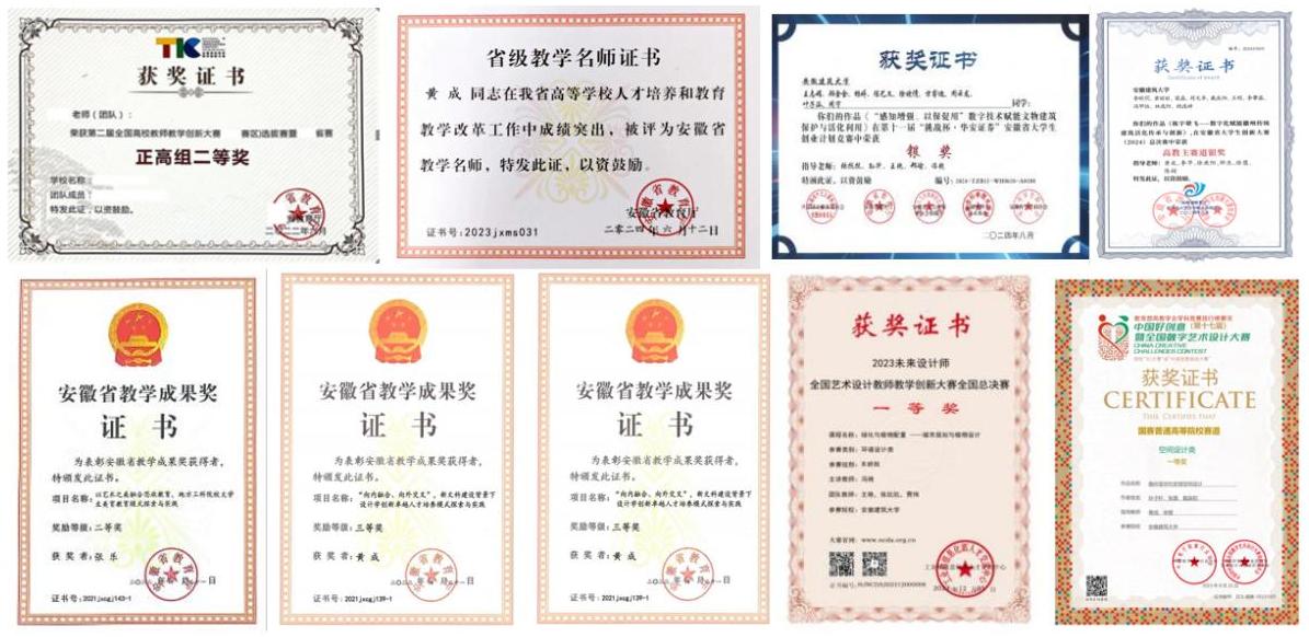 近年来,学院获得国家社科基金艺术学项目、国家艺术基金、教育部人文社科项目、安徽省哲学社会科学规划项目等省部级科研课题40项,近年来纵横向项目科研经费近1000万元;发表学术论文150多篇, 其中在CSSCISSCISCIEI等学术期刊发表论文近20篇;获得国家专利、外观设计专利、实用新型专利20项,出版专著10余部。学生在参加国挑战杯、中国大学生国际创新大赛等国家级、省级学科专业大赛中获得了金奖(一等奖)60多项。部分成果如图所示:
