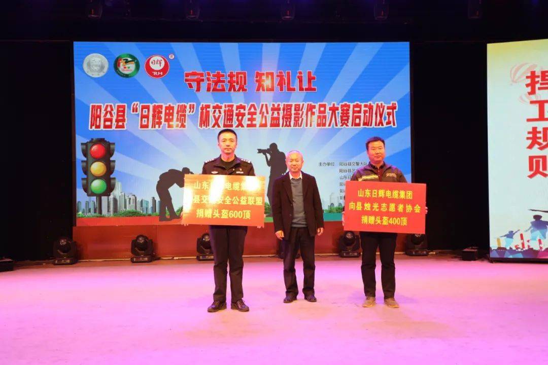 启动仪式上阳谷县艺术摄影学会会长郭莉莉公布了“日辉电缆”杯交通安全公益摄影作品大赛活动规则;山东日辉电缆集团有限公司董事长薛士国发言,并向县交通安全公益联盟及成员单位县烛光志愿者协会赠送1千顶安全头盔;阳谷县烛光志愿者协会会长刘洪国、县交警大队大队长杨正强先后发言。