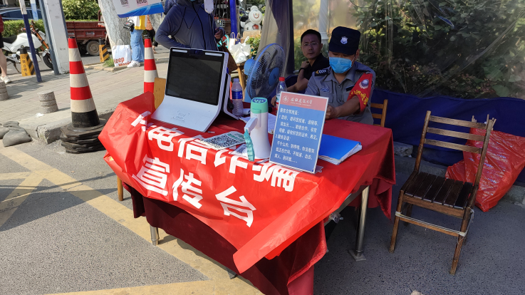 为做好秋季开学报到期间安全宣传教育工作,提高学生及家长安全意识,保卫处积极与派出所联系,根据南北区实际情况,制作防范电信诈骗宣传牌,设置防范电信诈骗宣传台。