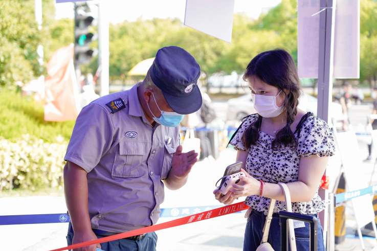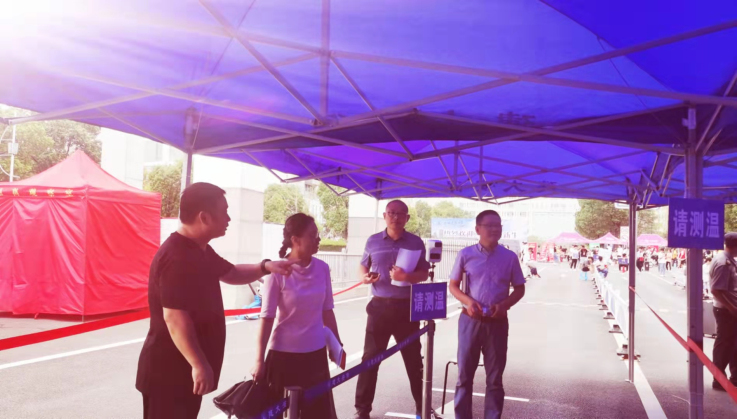 校门是疫情防控的第一道关卡。为了缩短学生在校门口聚集的时间,学校设置多个学生通道及家长休息区,及时分散人员,学校秋季开学疫情防控督查组现场检查指导。