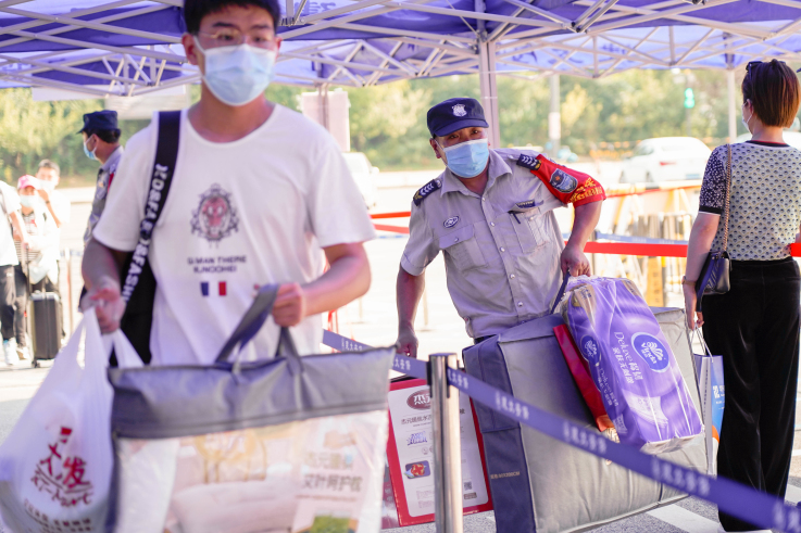 本网讯 2021年9月2日至8日,学校陆续迎来老生开学及新生报到。为严格落实疫情防控各项要求,积极宣传防范各种骗局,全力保障学生报到安全,保卫处按照学校统一部署,提前制定安保方案,演练完善安保流程,加强与派出所、交警等部门联系,强化安保人员培训,各岗位恪尽职守,圆满完成学校秋季入学报到安保工作。