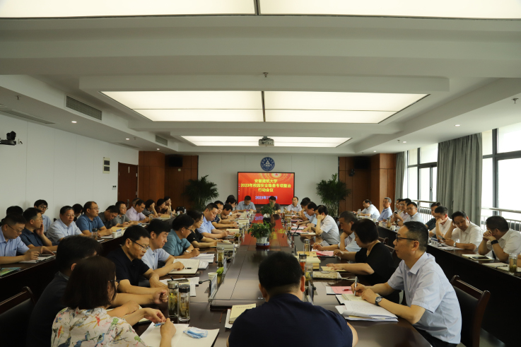 本网讯 7月4日,为深入贯彻落实习近平总书记关于安全生产重要论述精神和安徽省学校安全生产专项领导小组办公室、省教育厅有关文件要求,学校在南校区实验综合楼21楼第二会议室召开校园安全隐患专项整治行动会议。学校安全工作委员会成员单位主要负责人参加,会议由校党委书记孙道胜主持。