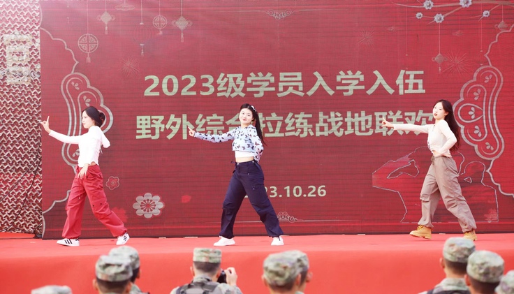(二)国防教育体现培树学生爱国主义情操。学校高度重视全民国家安全教育日普法宣传活动,紧扣“贯彻总体国家安全观,增强全民国家安全意识和素养,夯实以新安全格局保障新发展格局的社会基础”宣传主题,联合属地公安入校开展“4·15”全民国家安全教育日法治宣传活动。应中国人民解放军某院校邀请,联合校团委组织学生,精心准备表演节目,赴部队学员野外训练驻地,开展战地慰问,教育学生在享受盛世太平的时刻,决不能忘记那些守护岁月静好、一路负重前行的军人,激励更多的学生携笔从戎。