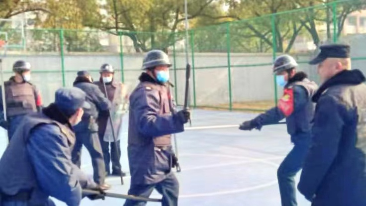 本网讯  为提高保安人员的应急处突能力和消防安全意识,保卫处寒假期间认真组织保安队进行假期各项管理规定学习。针对当前消防安全和应急处突重点,组织各岗位队员进行灭火器实操和消防水栓操作使用培训、对假期学校应急处突重点进行学习、对各类防暴器械进行培训以及对防暴应急处置流程进行学习规范,组织应急处突演练工作。