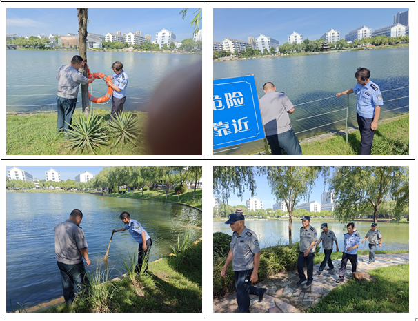 此外,在世界“防溺水”宣传日到来之际,保卫处联合社区民警,组织安徽888集团的安保人员在校园水域开展治安巡逻,并对校园的防范设置进行了全面的安全检查,确保校园水域的安全。