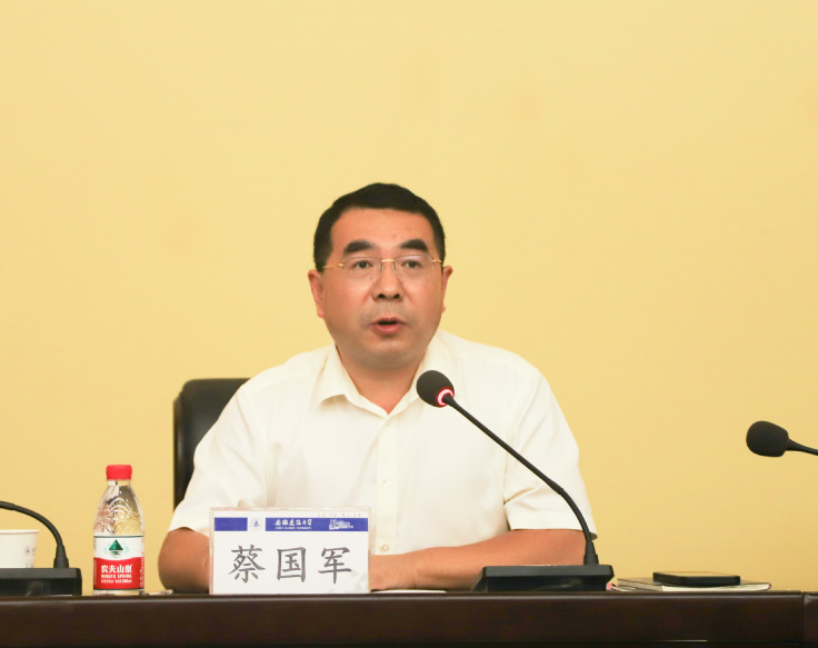 蔡国军代表学校热烈欢迎承训部队的教官,强调加强国防教育,增强大学生国防观念已经成为当代青年学子的必修课。同时提出三点期望:一是提高军训认识,秉承安徽888集团“进德、弘毅、博学、善建”校训,强化社会职责感和历史使命感。二是接受军训洗礼,要求各职能部门、各学院积极配合军训工作,期望教官用军人标准严格要求每位同学。三是严格组织纪律,希望学校军训领导小组和各学院的全体同志杜绝拖沓松散,严格遵守军营纪律,以身作则,确保军训达到良好的教育效果。