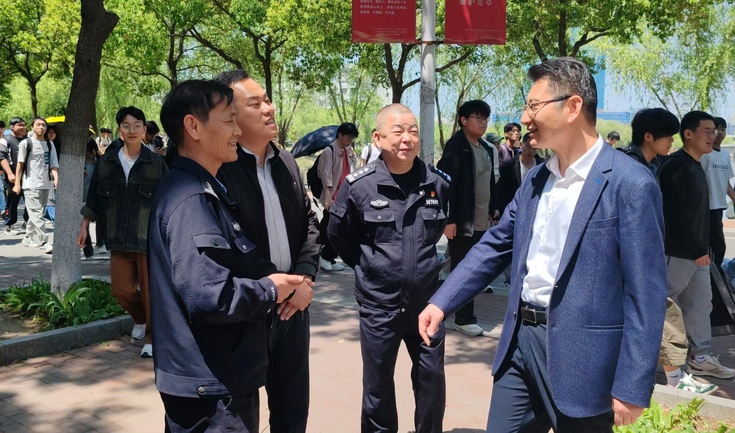 本网讯 4月15日,学校各单位认真组织开展2025年全民国家安全教育主题普法宣传活动,保卫处联合办公室、宣传部在紫云路校区、金寨路校区分别设置宣传展台、制作宣传展板,属地公安机关国保大队、派出所警官来到学生身边开展普法教育活动。校党委书记马文革现场指导。