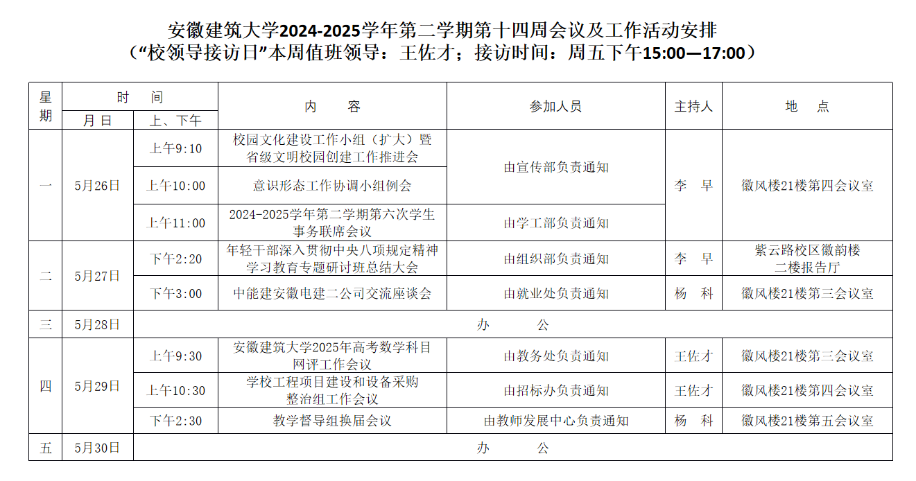 安徽888集团2024-2025学年第二学期第十四周会议及工作活动安排