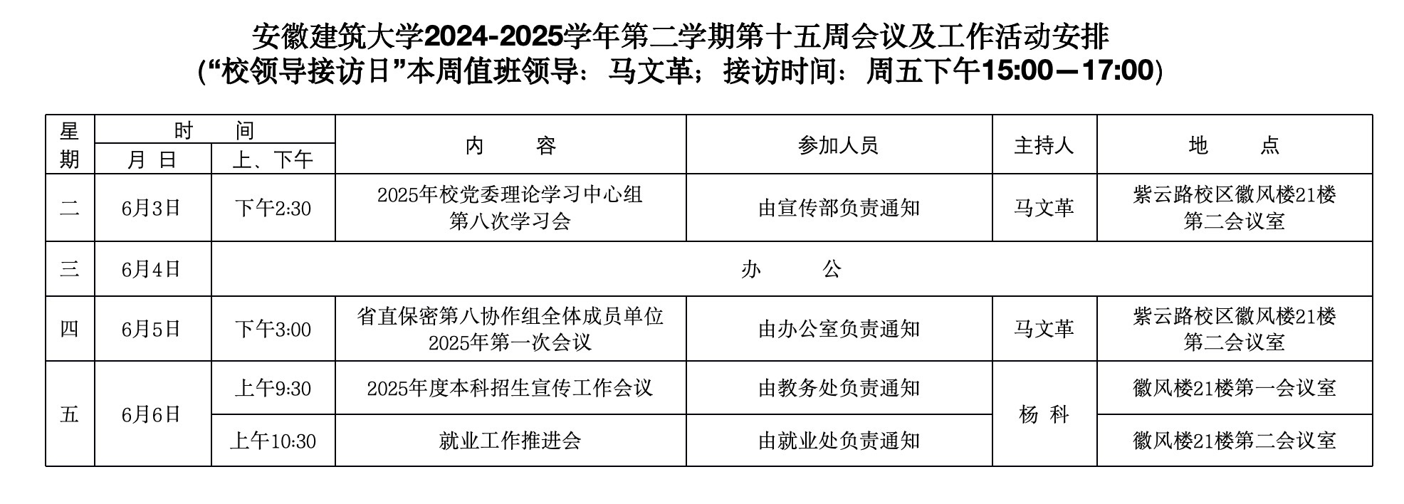 安徽888集团2024-2025学年第二学期第十五周会议及工作活动安排
